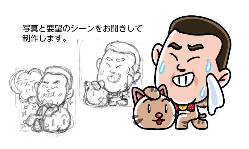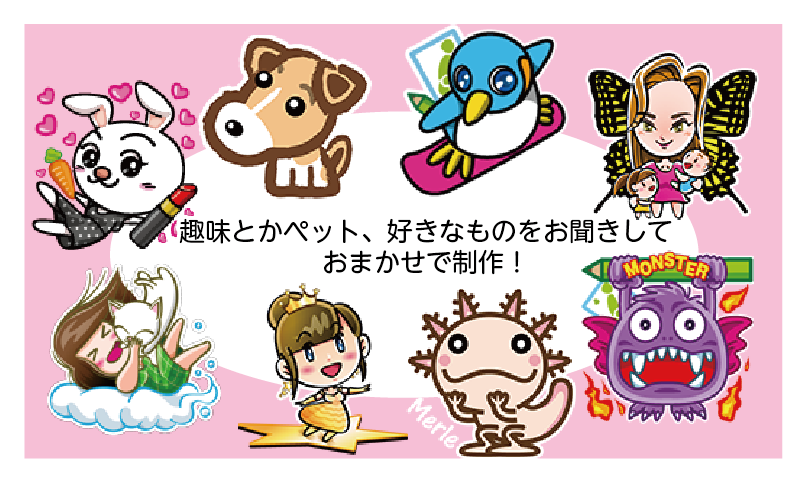 そんな方へ!趣味やペット、興味のある話をいろいろ聞かせていただき、構成も含めて考えてアバターを描きます。